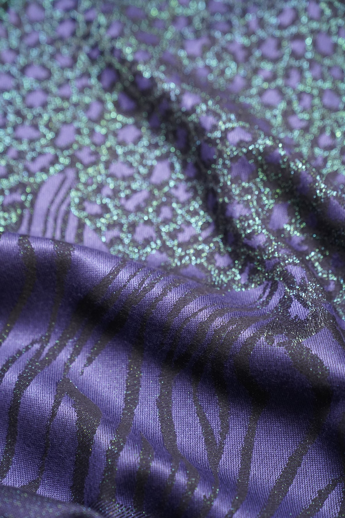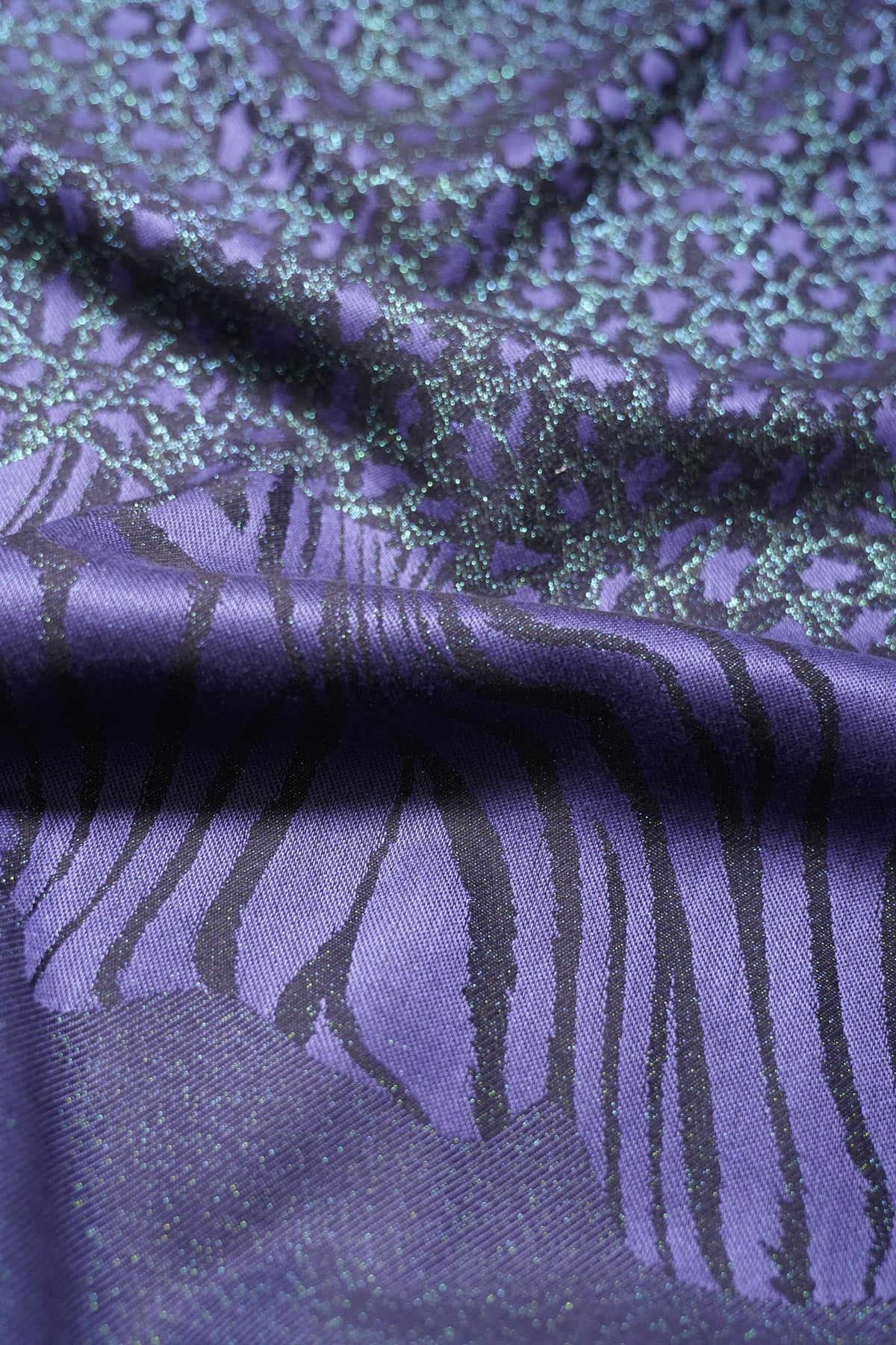 Eine Tasche, die Platz und Stil zugleich schenkt: Die Mommy Bag Majestic Motherhood ist wie eine Schatztruhe für den Mama-Alltag. Drinnen finden Wickelsachen, Snacks, Lieblingsspielzeuge und all die kleinen Dinge ihren Platz, die dir unterwegs wichtig sind. Draußen funkelt sie in violettem Jacquard mit grünem Glitzer – ein Accessoire, das Funktionalität und Eleganz vereint.