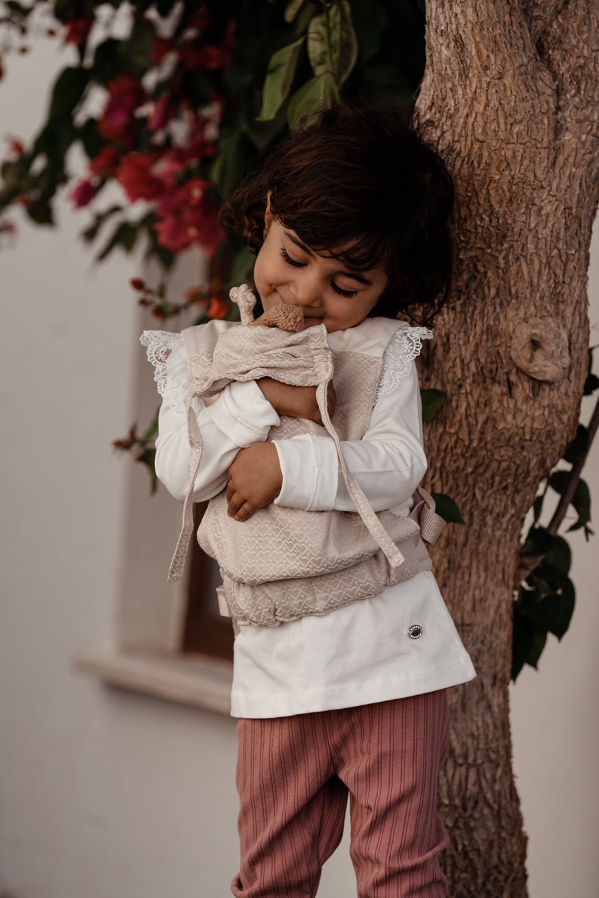 Mit dieser Edlen Trage ist man der Hingucker für alle. Auf der Kokadi Bilder sieht die Trage schon sehr schön aus . In Real hat sie mich dann komplett überzeugt . Trotzdem des glitzer Anteils ist sie kuckelweich und trägt sich sehr bequem.